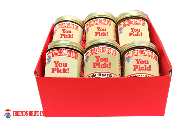 Select six jars of Friends Drift Inn gourmet jams and jellies – mix and match flavors. The perfect gift!